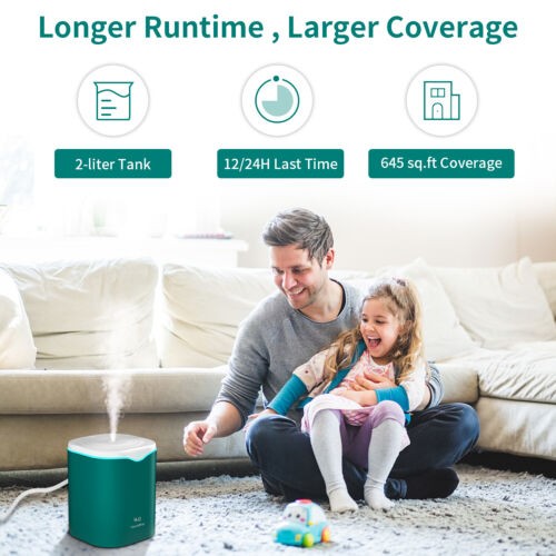 2000ml Quiet Ultrasonic Humidifier 2-in-1 Diffuser Cool Mist Maker W/ LED Light