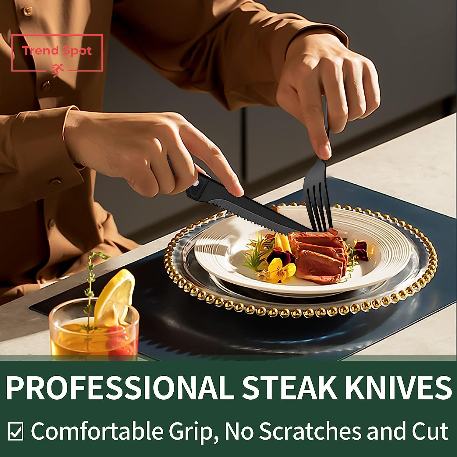 24-Piece Black Silverware Set with Steak Knives, Black Flatware Set for 4, Food-
