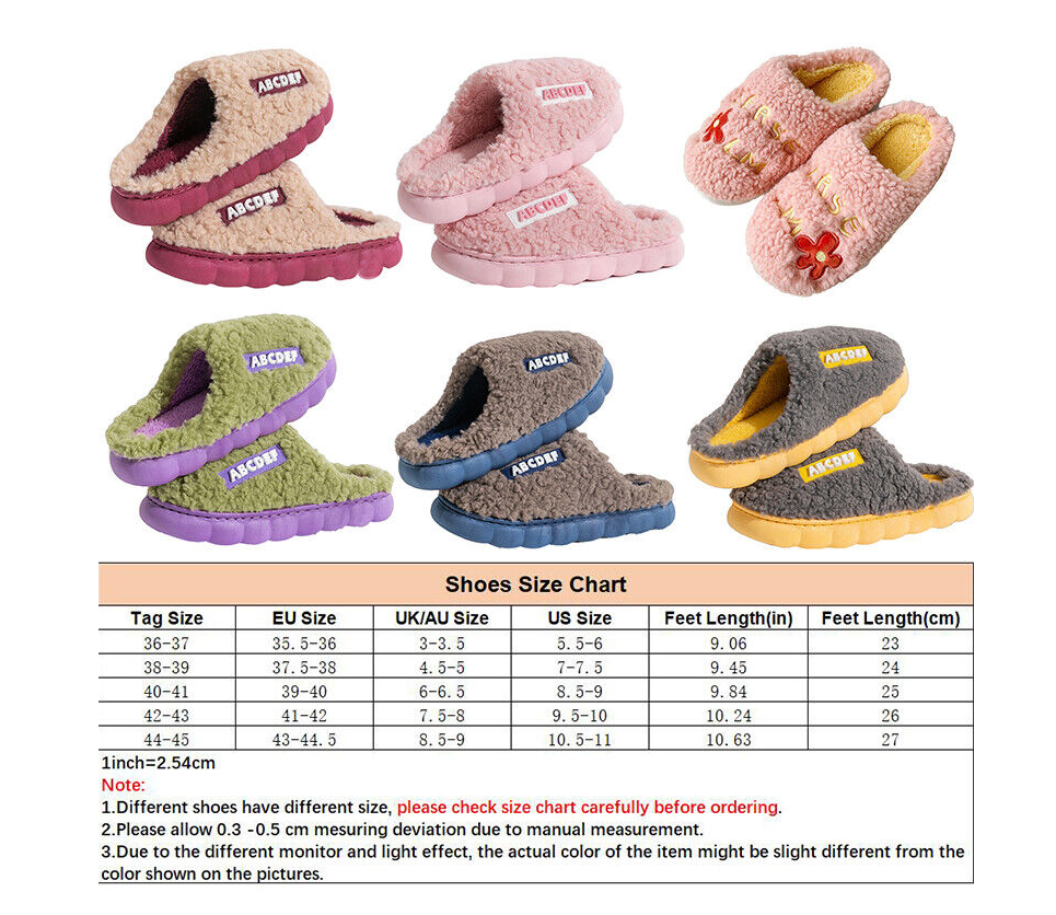 Womens Slippers Slider Ladies Warm Fur Lined Winter Warm Mules Shoes House Size